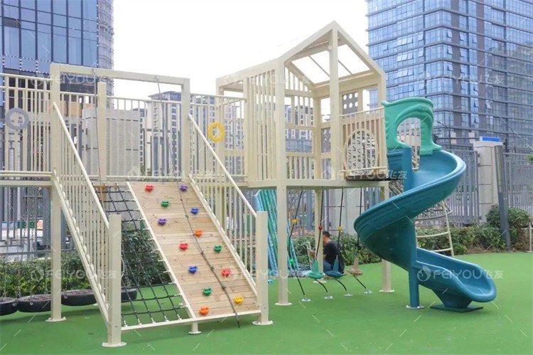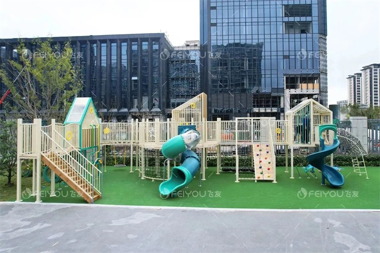 廊桥游乐设备为户外主要游戏活动区,简约而不失游乐性,规格独特,内容丰富。不仅为孩子们提供了充满乐趣的游乐体验,还锻炼了他们的体能和社交能力。