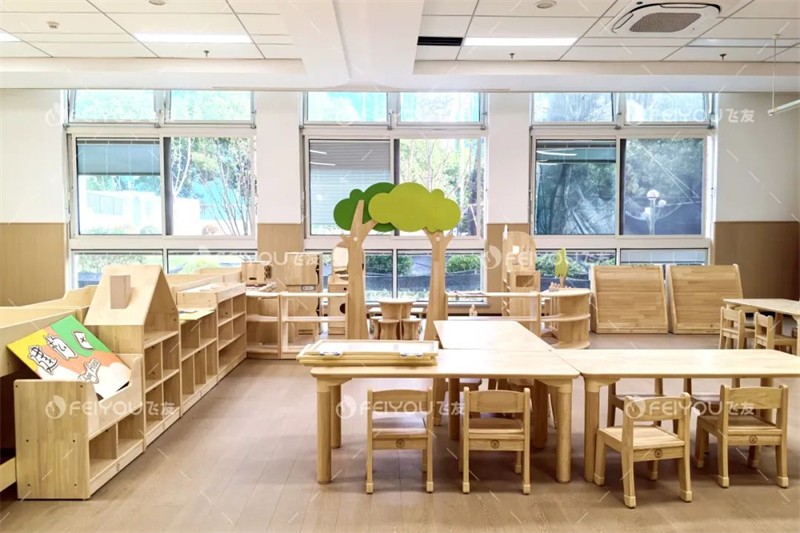 飞友为苏外旗舰园挑选并提供了高品质的幼儿家具,这些家具均源自全球精选的优质木材,确保了材质的天然与耐用。在生产过程中,飞友严格遵循环保标准,采用无害涂料,为孩子们营造一个更加健康、安全的学习与生活空间。
