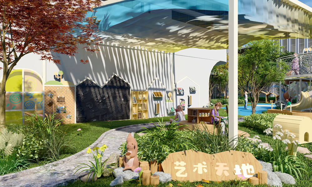 设计理念:突出了以光学为特色的科探主题幼儿园设计。孩子们在这个山谷般的园所里,通过各种光影实验活动,感受自然世界如同魔法般的奇妙,激发他们对科学现象的兴趣。