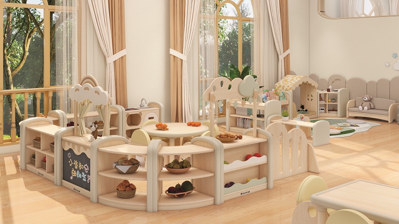 角色扮演区是孩子们模仿成人世界的小舞台。这里有小厨房、小超市、小医院等场景道具。孩子们可以穿上各种职业服装,扮演厨师、售货员、医生等角色,体验不同的职业生活。通过这种方式,他们能够更好地理解社会规则,学会与人交往和合作。