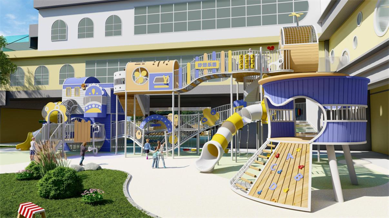 3、非标定制:针对幼儿园、学校、社区、文旅地产等需求,提供游乐设备、教育装备整体定制解决方案,含规划设计、生产安装。