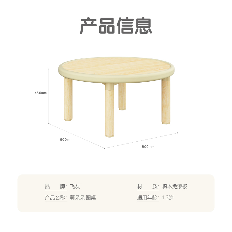 | 主要材质 | 桌面采用25mm厚饰面实木板,桌腿采用φ62mm实木料; |