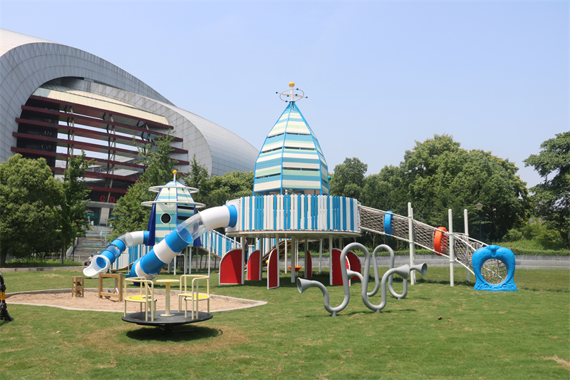 户外空间作为幼儿接触自然、释放活力的主要载体,分区设计需注重“动静结合”。首先是运动功能区,需根据不同年龄段幼儿的运动能力分层设计:小班区域可设置低矮的攀爬架、软质跑道和平衡木,侧重基础动作训练;大班区域则可增设滑梯组合、沙池、戏水池等,满足幼儿跑、跳、钻、爬等综合运动需求,同时需做好地面防滑、边角软化等安全防护。其次是自然探索区,可规划种植园、小型草坪、昆虫观察角等,让幼儿在照料植物、观察自然的过程中培养观察力与责任感。此外,还需预留户外休憩区,放置遮阳棚与舒适座椅,供幼儿休息、交流,兼顾运动与放松的需求。