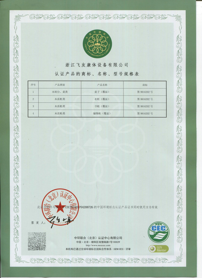 中国环境标志(Ⅱ型)产品认证证书