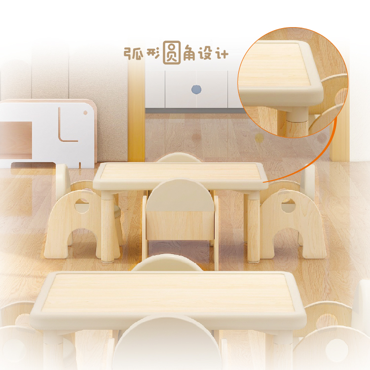 | 主要材质 | 桌面采用25mm厚饰面实木板,桌腿采用φ62mm实木料; |