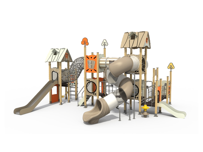 | 主要材质 | 1、立柱:外径89mm,厚度2.0mm镀锌钢管。表面处理后经专用塑粉喷涂,高温烤漆,抗紫外光强度高,色泽艳丽,不易脱落,日久弥新。 2、平台尺寸780*780mm,采用金属件采用钢制件加工成型后经除油、除锈、磷化、抛丸等工艺前处理后,采用户外环保聚酯粉末,静电喷涂,高混固化烤漆处理,表面光滑,具有优良的耐候性、表面光泽度好。 3、板材采用15mm/8mm厚HPL板,又称抗倍特板。由多层被酚醛树脂浸渍过的生皮纸和经树脂处理过的进口户外耐候装饰色纸,层叠高温高压而成,具有具强度高、耐冲击、防水、防火、耐潮湿的特性耐老化性好,长时间在户外使用不会产生退色龟裂等现象,经CNC加工产品细节生动,规整极县质感。其中平台表面额外模压防滑纹理处理,防止滑倒并更具质感。 4、不锈钢滑梯:采用厚度为3.0mm的304不锈钢,经折弯加工整体氩弧焊成型,焊缝打磨抛光、无边角毛刺、表面光滑、整体安全可靠经久耐用。 5、所有螺丝、五金件均采用不锈钢材质,耐腐蚀,不易生锈。 |